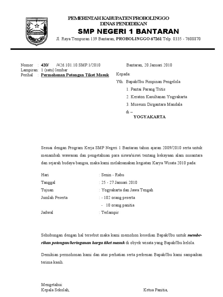 Contoh Surat Beli Tiket Feri